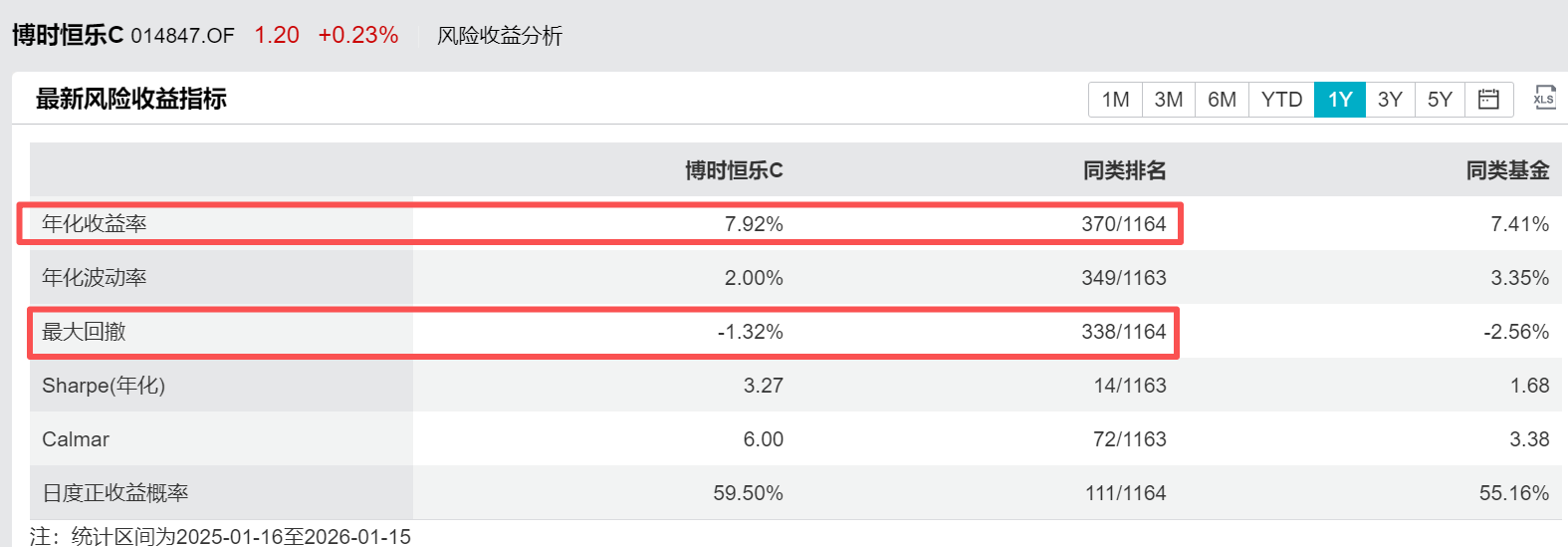 而且,近一年收益率近8%,波动却相对小,最大回撤只有1.32%,性价比超高!