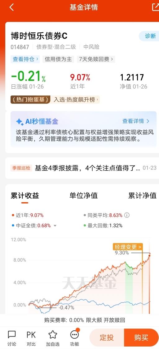 最近债市企稳,权益市场机会也有,这基双重受益,近一周收蛋70+。净值下来点好,正好加点码。
