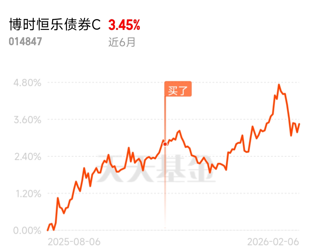忍不住要赞一下$博时恒乐债券C$ ,它的债券仓位提供稳定收益,股票部分又抓住了行情。上周五有色、化工板块都给力,单日收蛋26个,半年累计340多个,短线和长线表现都让人满意。今年来债市缓步回升,1月份央行“天量”投放,直接奠定了宽松基调。最新数据显示,1月份央行通过买断式逆回购加MLF合计净投放超1万亿元,还通过国债买卖净投放1000亿元,创近期新高。这意味着银行负债端稳定,资金融出意愿强,债市有了持续的“活水”,博时恒乐作为债券型基金,债券仓位占比很高,主要配置的是中短端信用债,资金面宽松直接带动债券收益率下行、价格走强,基金净值自然跟着稳步上涨,净值一直稳中有升,曲线平衡。更让人惊喜的是它的权益部分,真的太会踩热点了,其权益持仓重点布局了有色金属和化工板块,其中中矿资源、铜陵有色都是前十大持仓,最近这两个板块彻底火了,属于资金抱团的热点板块。上周五,有色金属板块逆势上涨,小金属价格持续走高,中矿资源作为小金属龙头,直接大涨,铜陵有色也跟着发力,加上化工板块的万华化学同步上涨,权益部分贡献了不少超额收益,再加上债市的稳定收益,表现相当出色!#我的日常操作打卡#