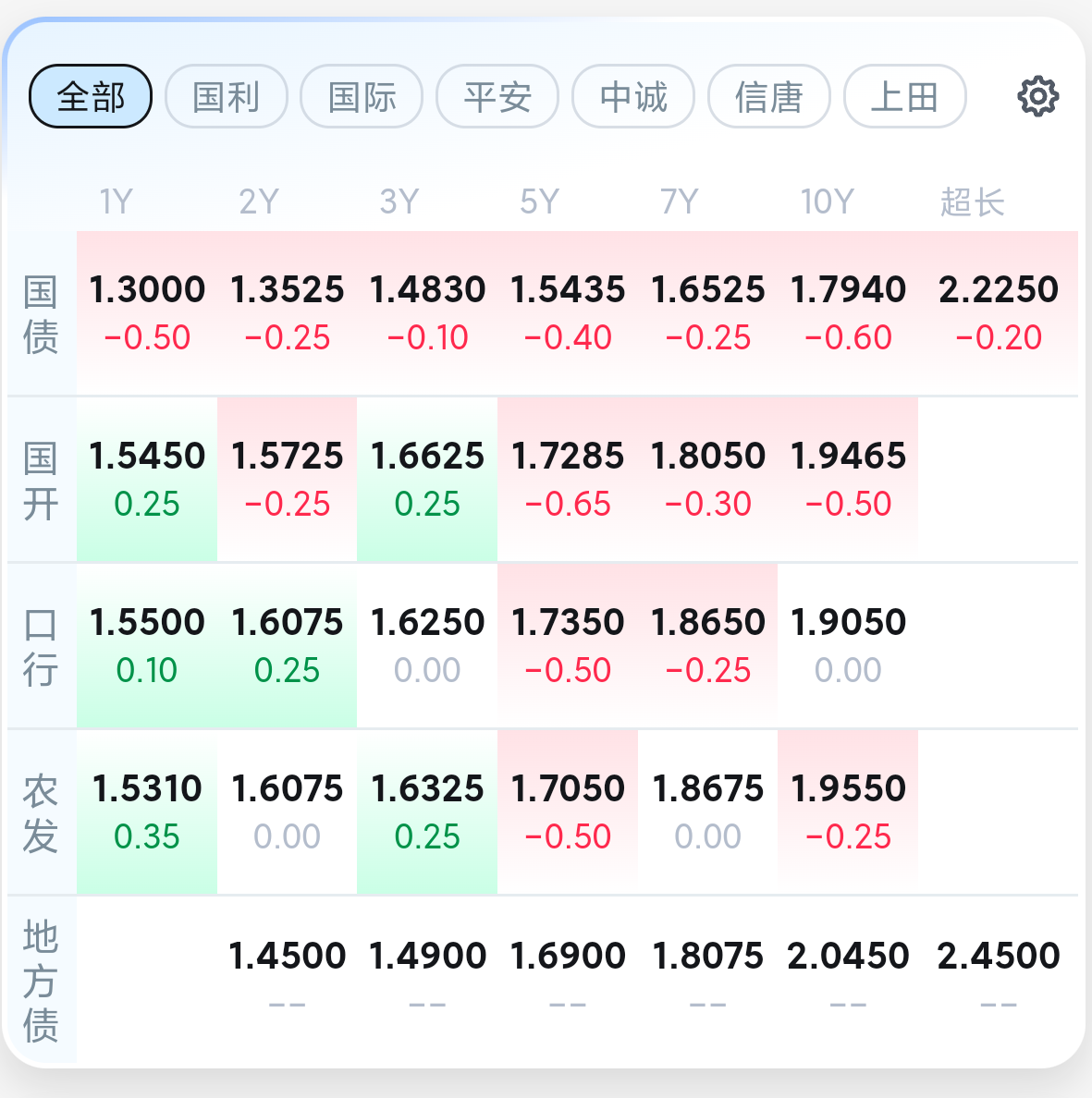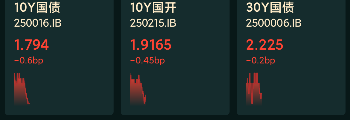十年期国债收益率:1.794%,-0.6BP(国债收益率越跌,债市越涨)