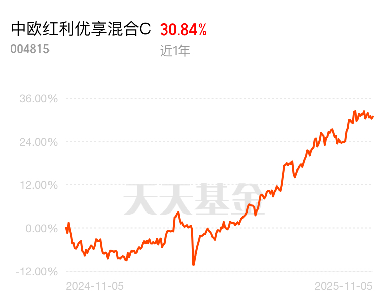 现在市场热点轮动太快,今天这个板块领涨,明天那个板块跳水,手里的基金跟着坐过山车。我早就换成了中欧红利优享灵活配置混合C,近3个月表现不错,红利策略本身抗跌,再加上有色周期布局,基金经理蓝小康稳扎稳打,比追热点靠谱多了。$中欧红利优享混合C$