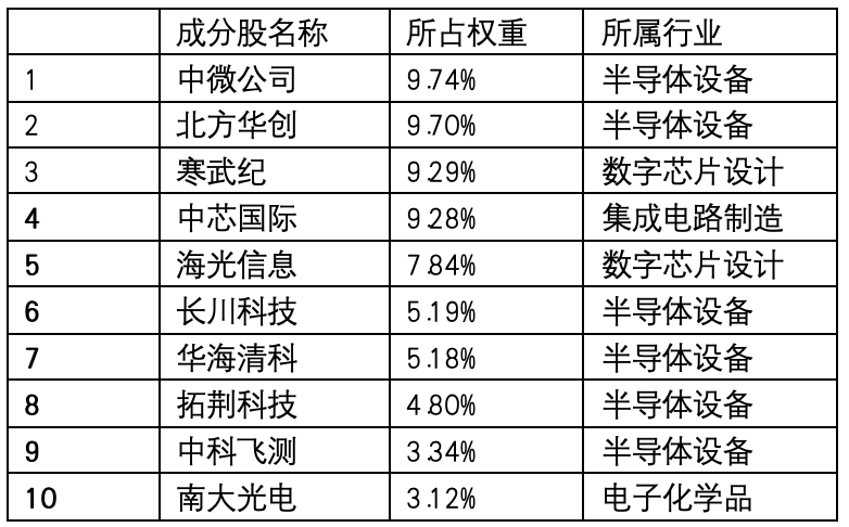 截至9月30日,根据基金三季报的披露,嘉实中证半导体增强的前十大成分股如下: