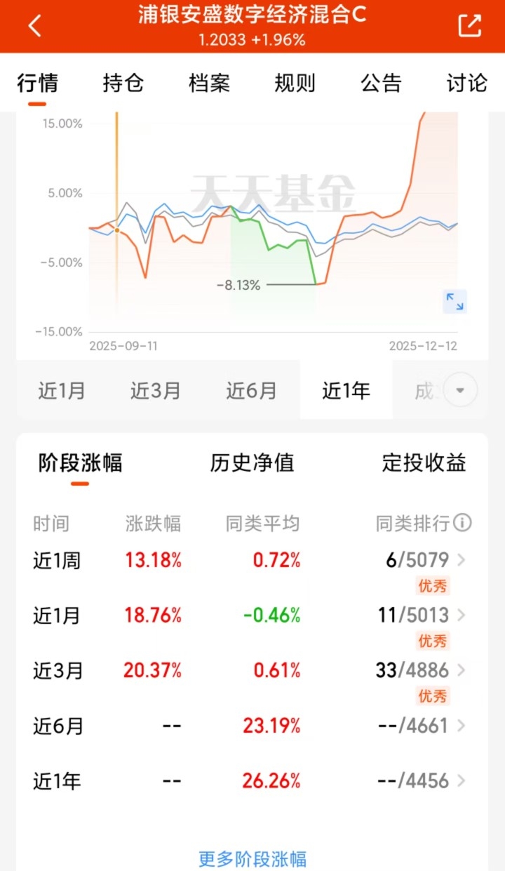 涨的多跌的少的CPO找到了 !15个交易日,浦银数字经济就调整了2天,近一个月涨了18.76%,近一周就涨了13%太强了$浦银安盛数字经济混合C$