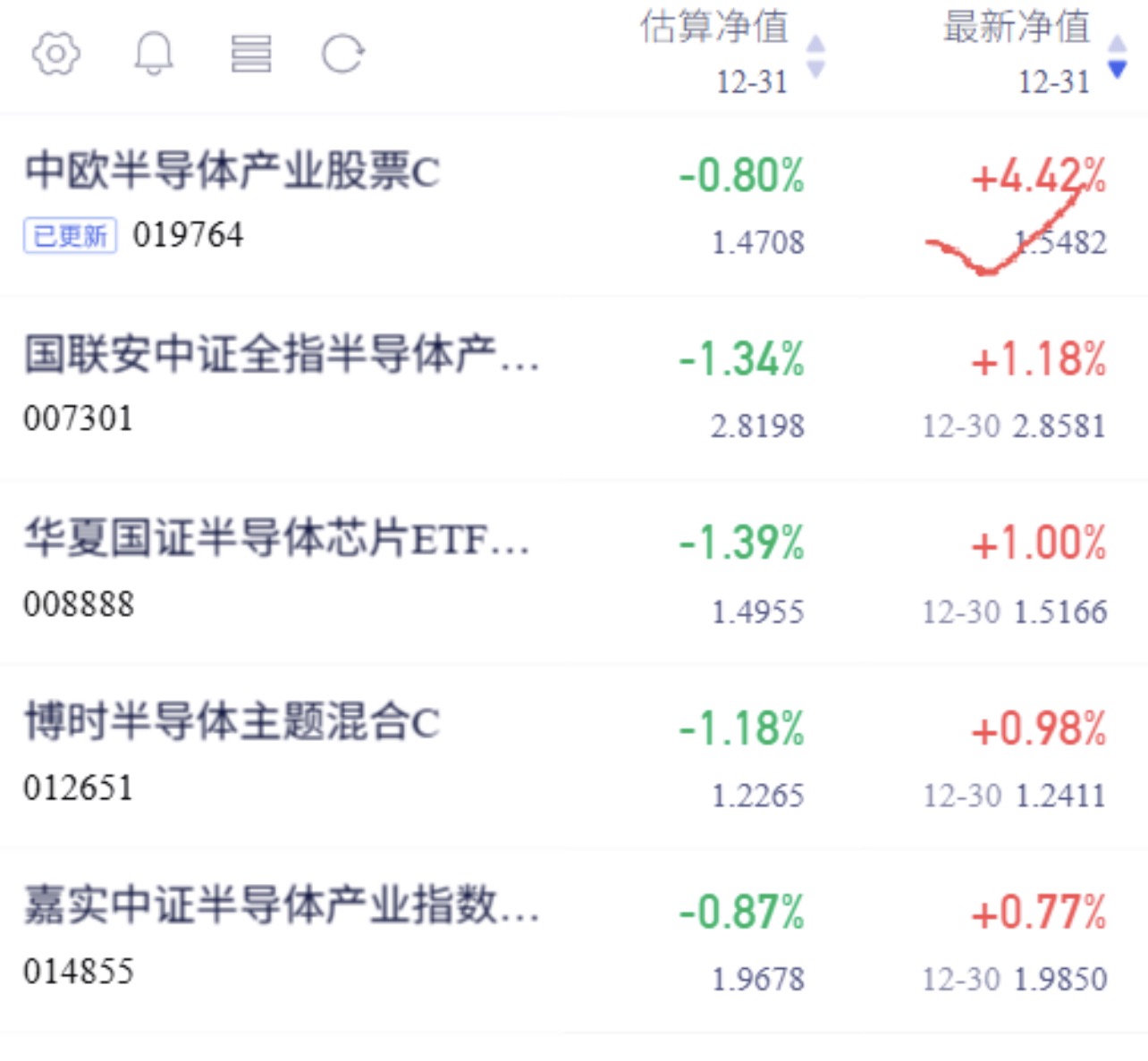 半导体让人太惊喜了,我的中欧半导体产业C大涨4.42%,自建仓以来王直没有卖,期待来年表现!