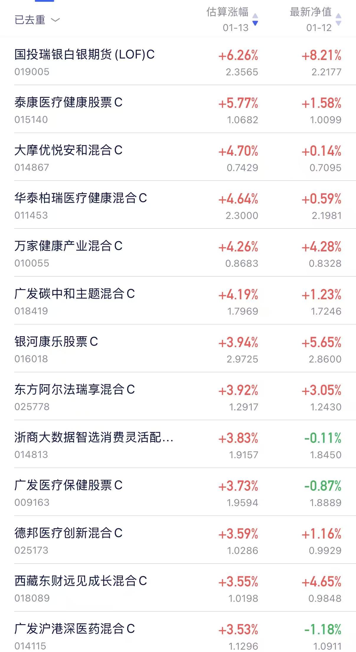 今日我关注的一些热门基金上涨下跌情况分享:$国投瑞银白银期货(LOF)C(OTCFUND|019005)$ $泰康医疗健康股票发起C(OTCFUND|015140)$