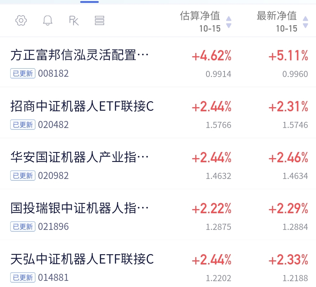 $天弘中证机器人ETF发起联接C$ 今晚上涨了2.33%加油