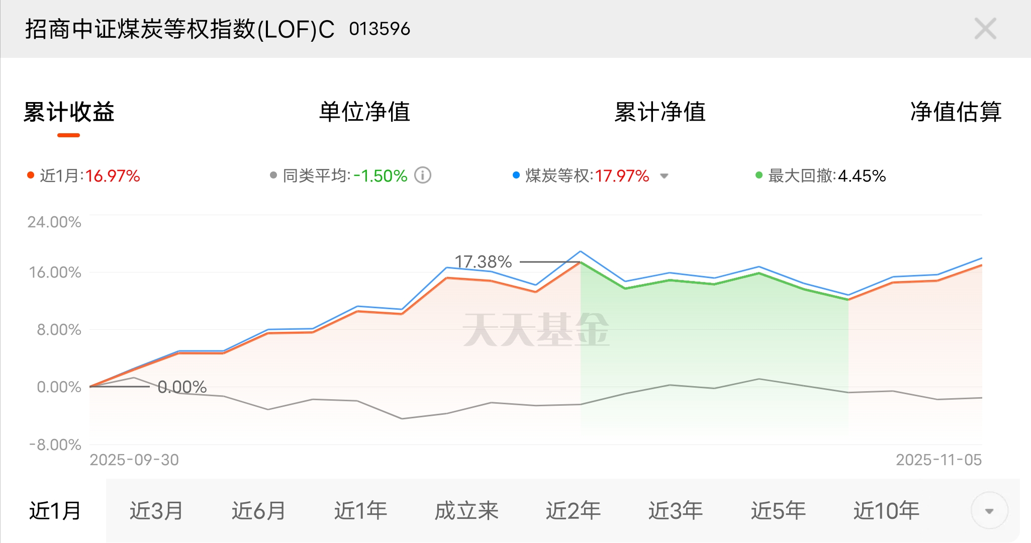 工业生产持续恢复,用煤需求稳步增加,煤炭行业景气度不断提升。招商中证煤炭等权指数C昨日日涨幅1.88%,近1个月涨了16.97%,跟着工业复苏的节奏,基金涨得顺理成章,收益很实在。