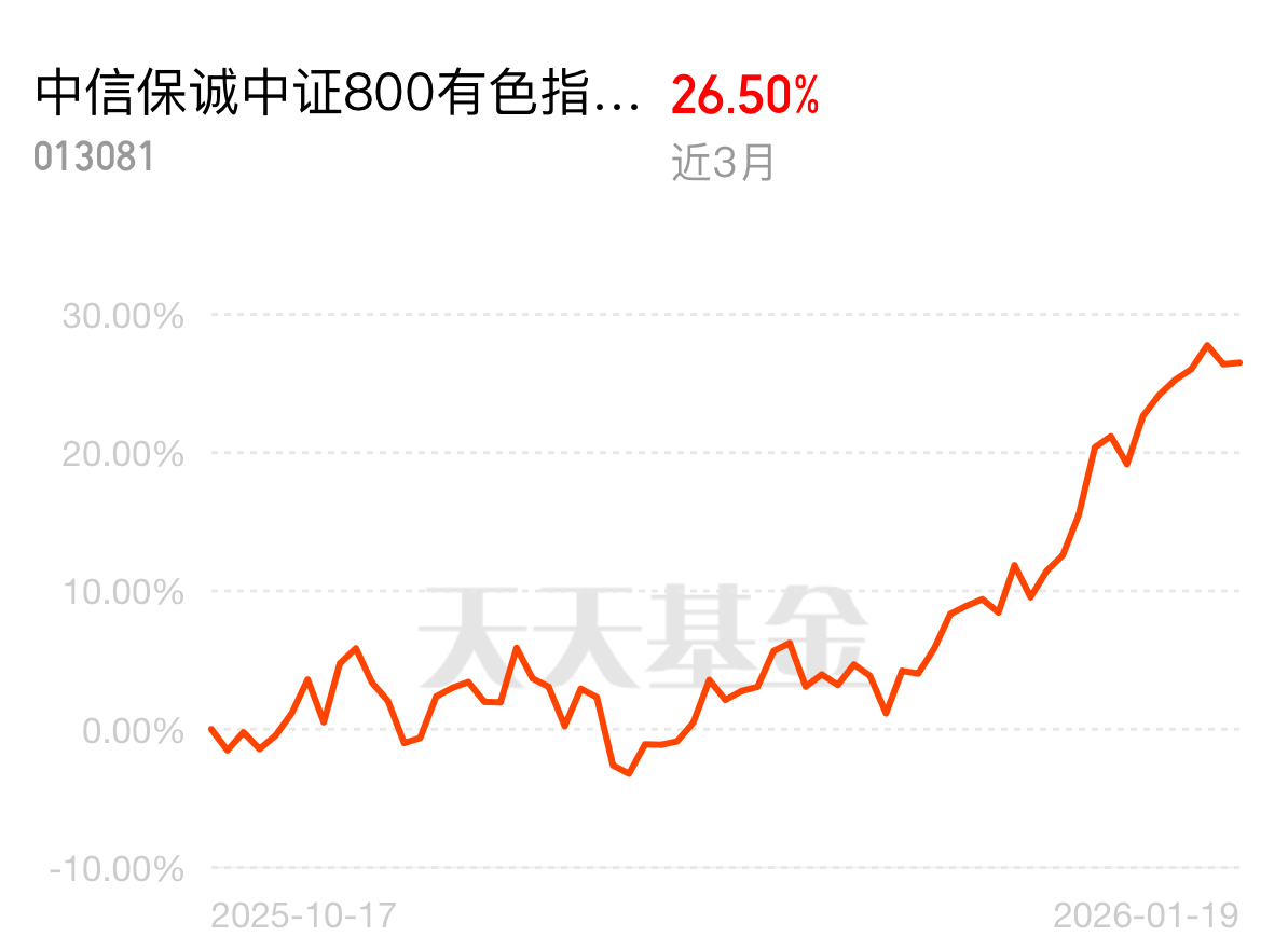 北向资金增持有色龙头股,主力资金没撤离,近期回调只是震荡。中信保诚中证 800 有色指数 (LOF) C 近 3 月涨 26.50%,政策护航 + 需求爆发,趁回调加仓正合适。$中信保诚中证800有色指数(LOF)C$