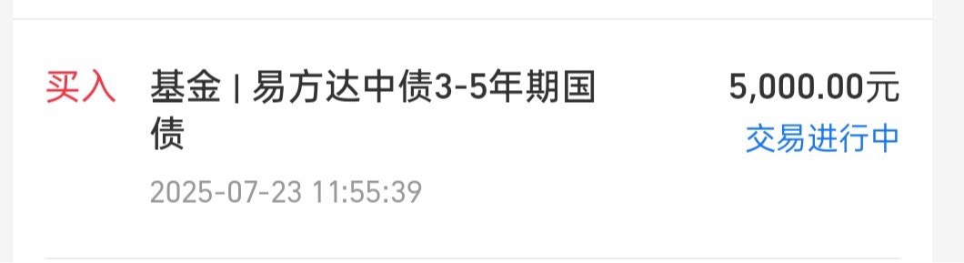 $易方达中债3-5年期国债指数$ +5000,近期股债跷跷板明显,加上7月21日发布消息,一年期、五年期LPR均维持不变,消息面短期对债市得到一定承压,但是当前经济恢复较弱,下半年降准降息仍有可能实施,短期的波动我都喜欢低吸,纯债走的都是正收益思路,最近债市回撤也是腾出了一些上涨空间,拿稳就行了,回撤后修复也快,放着吃波反弹收益。这只主投3到5年期利率债,在严控低风险的情况下,有着不错的收益。长期看,近一年收益3%,同类中收益属于偏高了,这种中等久期的利率债既能紧跟市场行情,净值波动又相对较小,能够稳稳地参与一波市场行情。最近债市连续调整,位置也是比较低了,今天低吸5000放着,吃波反弹收益!