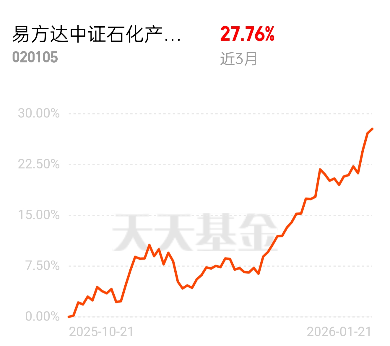 石化行业库存创历史低位,价格拐点已经出现,石油天然气领涨超明显,易方达中证石化产业 ETF 联接发起式 C 近 6 月 37.81%,三桶油 + 细分化工机会都想抓住,买石化产业趁现在$易方达中证石化产业ETF联接发起式C$