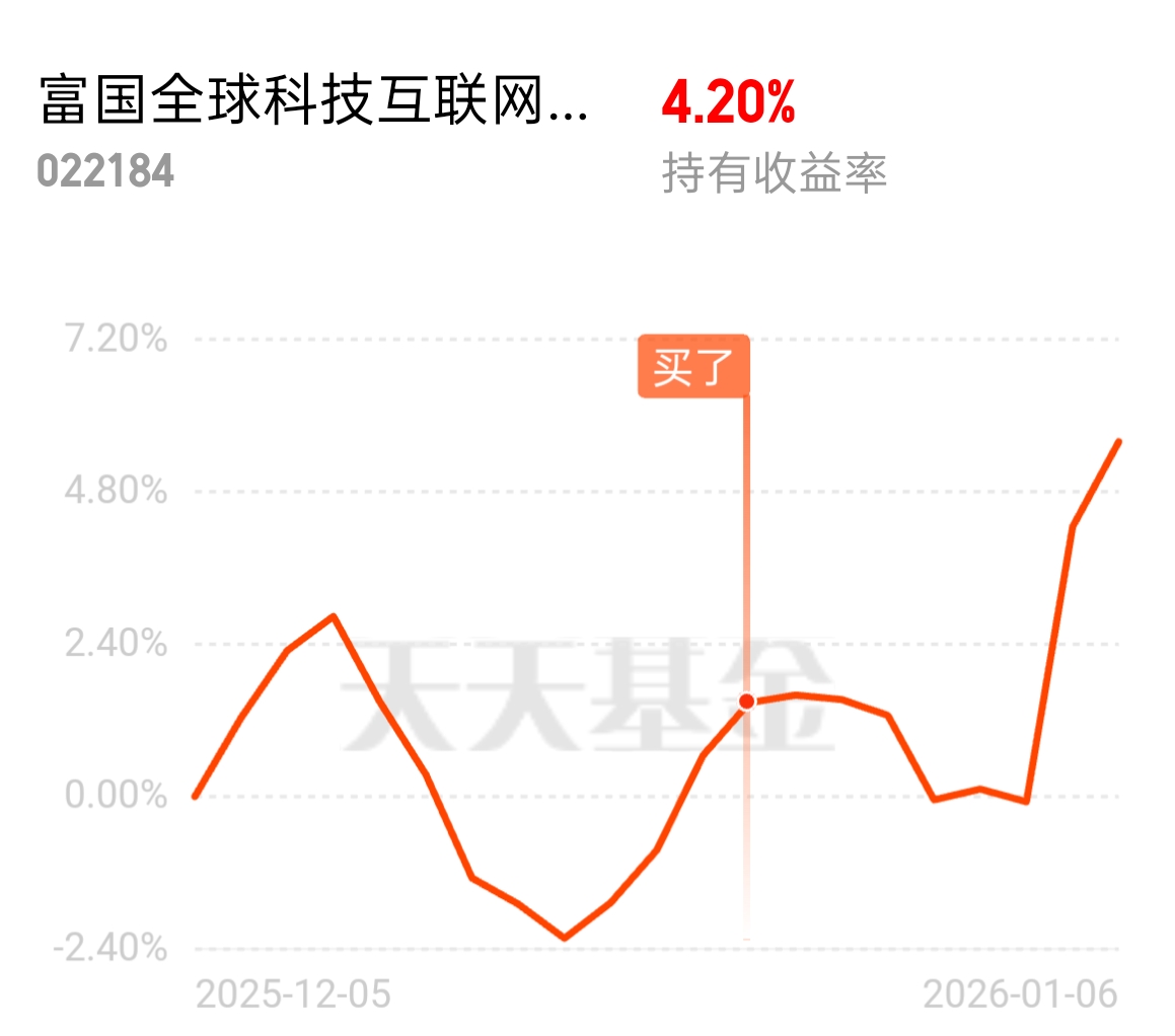 化工这边这阵子一个月发挥不错,赚了点甜头,正好腾出些空间看看成长方向。富国全球科技互联网C近一周涨了5.5%,跑得比同类快不少,背后是台积电3nm良率突破85%、苹果追单带动的半导体链回暖,加上主投股有谷歌、腾讯控股、阿里巴巴-W这些全球科技龙头,布局挺扎实。现在组合里一边是周期属性的化工,一边是全球科技成长主线,动静搭配,调仓也更从容。富国全球科技互联网C在手,对冲单一行业波动的同时间,也能搭上AI和数字化长期趋势。$富国全球科技互联网股票(QDII)C$