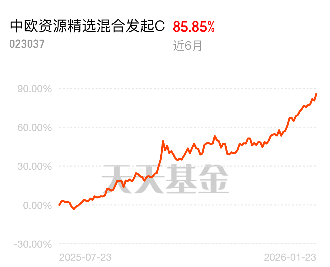 想抓黄金有色红利就选中欧资源精选混合发起C,近6月85.85%涨势超猛,1月22