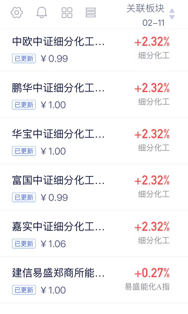 中欧中证细分化工 今天上涨2.32%