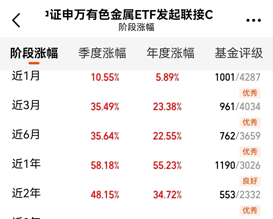 降息之后,市场资金更宽松,有色金属板块关注度提升。$南方中证申万有色金属ETF发起联接C$(004433)近三个月涨了36%以上,今年来涨52%多,业绩很实在。有色板块是典型的周期行业,跟经济冷暖高度相关,经济向好时,金属需求扩张,价格易涨。这基金一键布局行业龙头,分散个股风险。近期一些金属供应端出现突发情况,进一步强化了价格支撑。该基金近一年收益60%多,排名同类前列,显示板块行情中指数化投资的效率。我觉得,普通人通过这类基金参与周期行情,比猜个股更稳妥,尤其适合中长期看好资源品、但缺乏专业知识的人。大势下,行业整体机会大于个别风险。#“924行情”一周年 你赚了多少?#