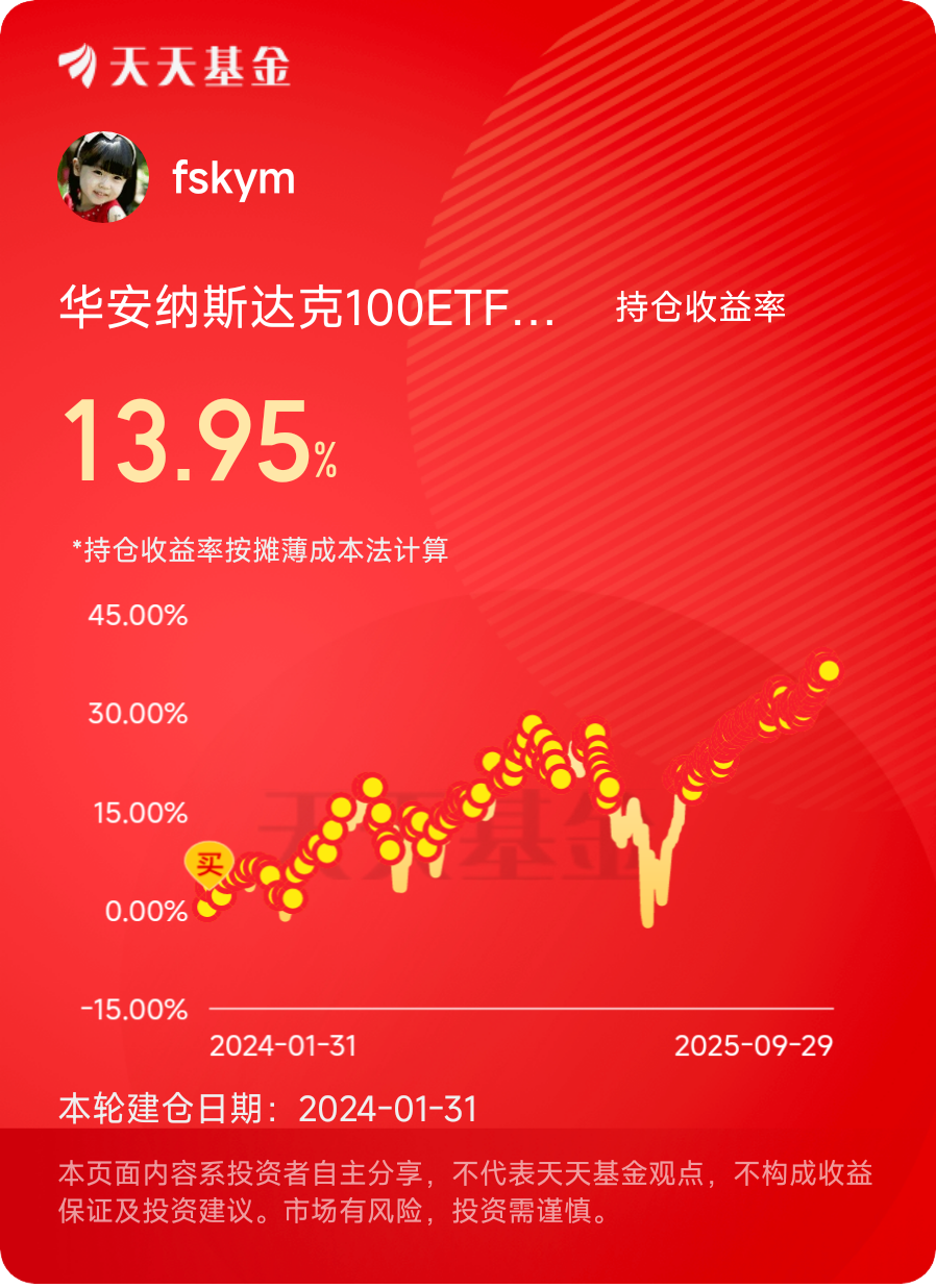 它是时间的朋友。 通过长期、持续的买入,你最终获得的是一个充满优势的“成本均价”,时间会成为你财富的乘数,而不是刽子手。@华安基金