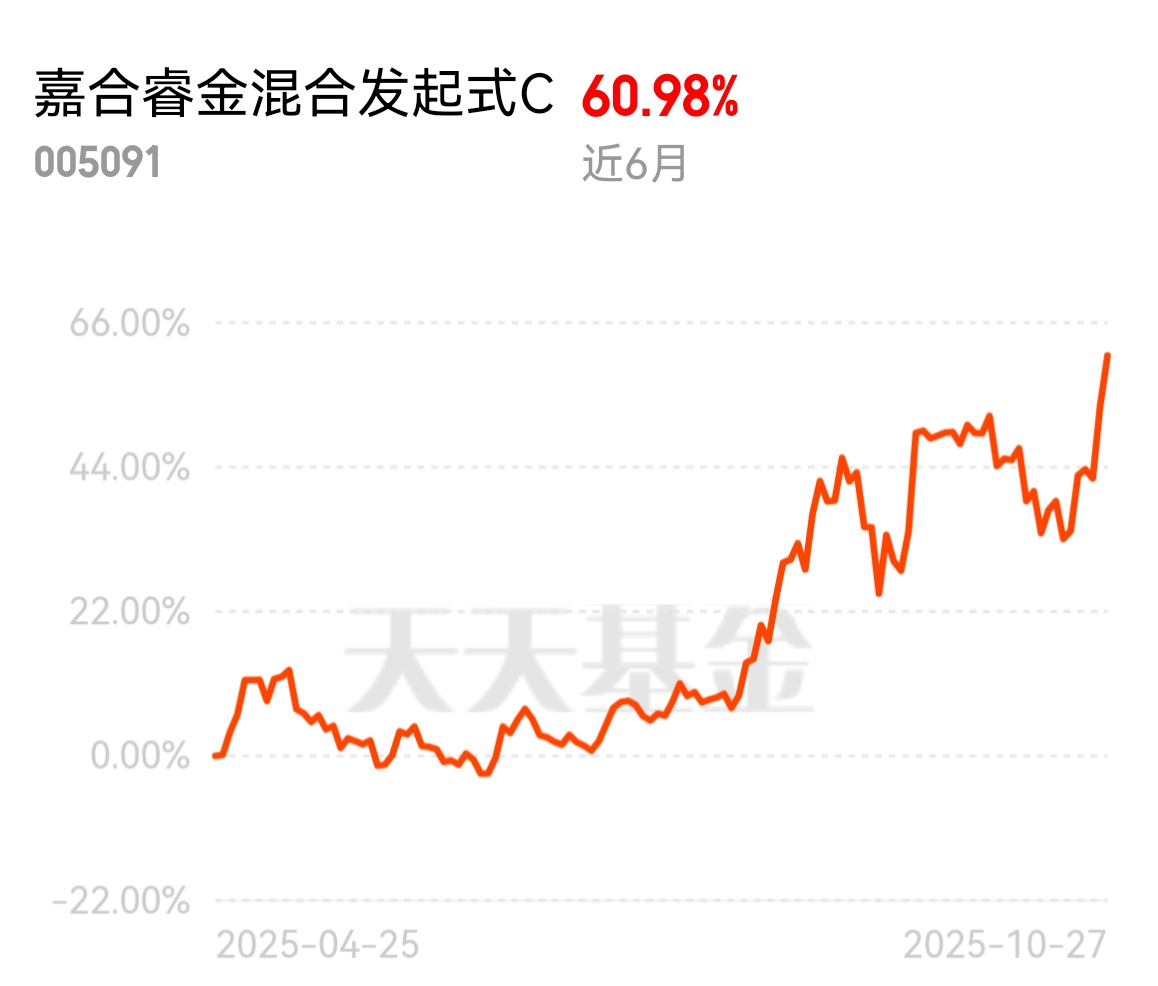 CPO板块回调后快速反弹,存储芯片持续走高,科技赛道韧性十足。嘉合睿金混合C紧跟趋势,1周20个点,近6个月60.98%,业绩真亮眼。