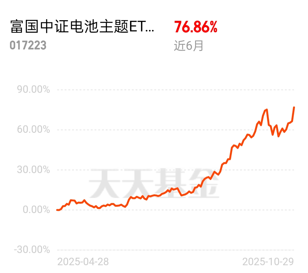 $富国中证电池主题ETF发起式联接C$近6个月涨了76%,跑赢大多数同类;指数估