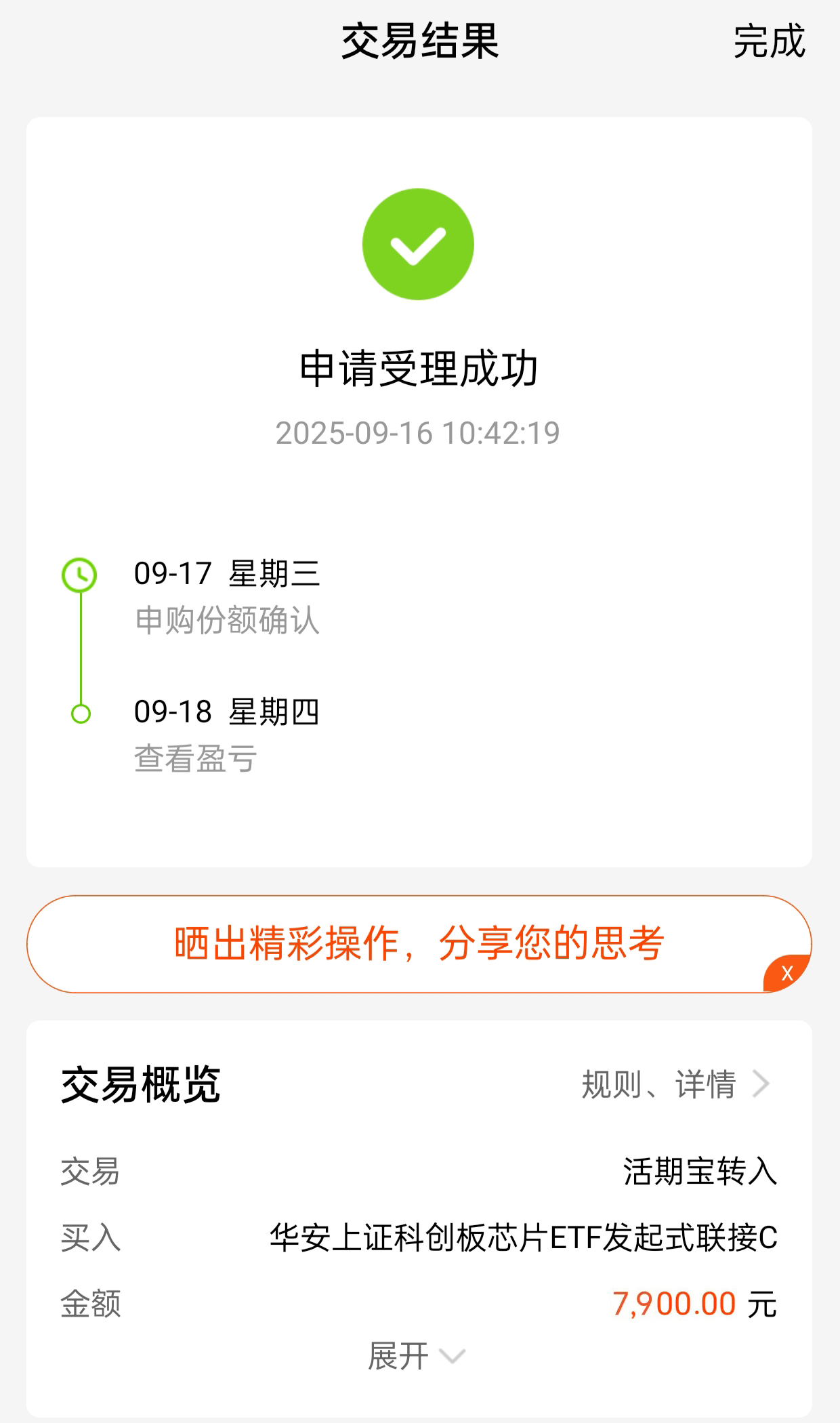 半导体涨势停不下来,选对基金太重要!$华安上证科创板芯片ETF发起式联接C$(017560)必须安利!它精准跟踪科创板芯片指数,聚焦半导体核心领域,AI算力、先进制程等热点全抓住。规模大、交易活跃,流动性超棒,赎回不用等。费率更是卷到极致,管理0.15%+托管0.05%,同类最低!现在半导体复苏+大基金加持,这只基金让你轻松跟上行业节奏,普通投资者闭眼入#科技后市怎么看?#