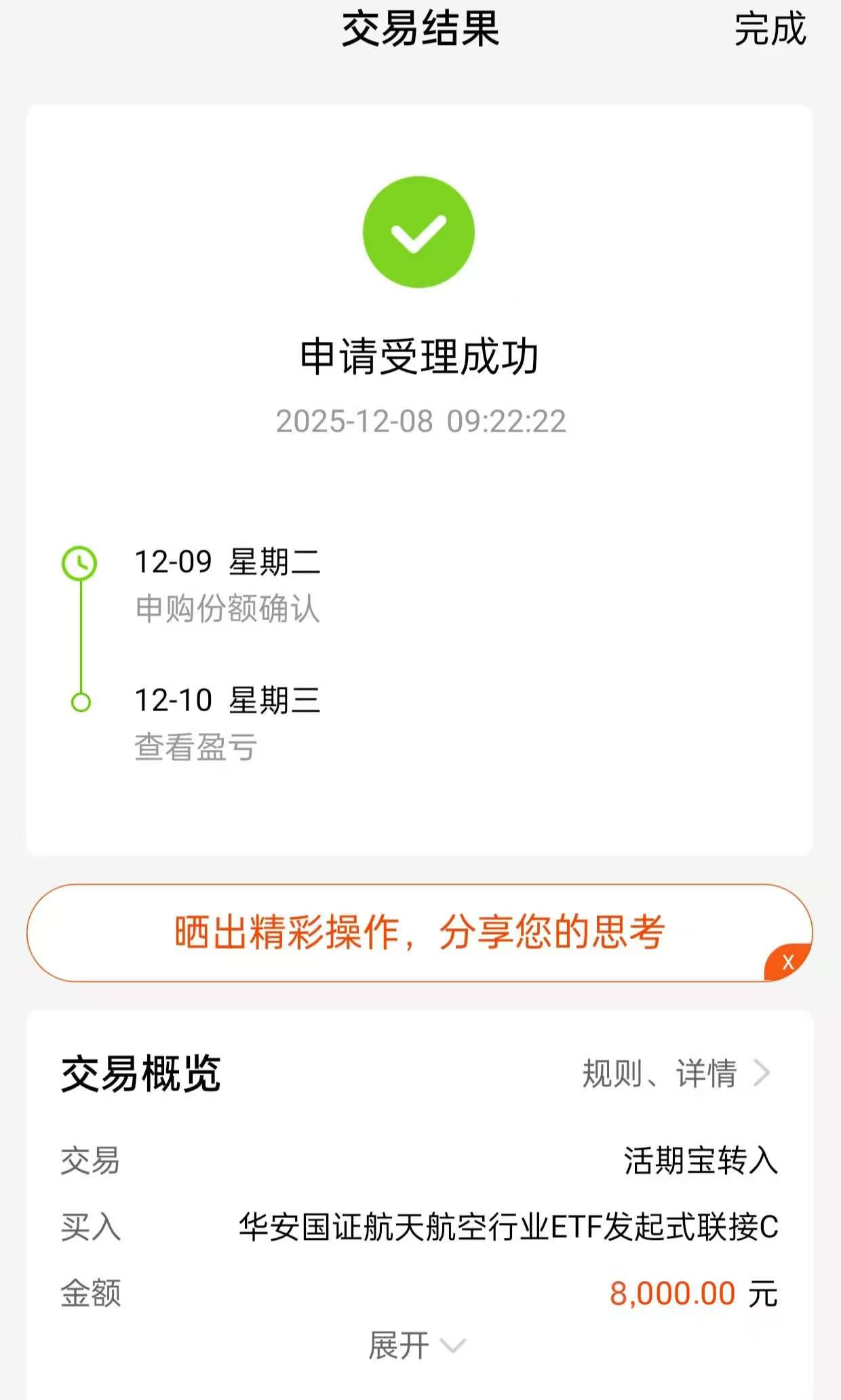 SpaceX星链登陆韩国,全球商业航天竞争白热化,咱们国内卫星互联网建设也进入加速期~$华安国证航天航空行业ETF发起式联接C$(025733)的跟踪指数军工占比超99%,避开其他行业干扰,聚焦航天装备、航空装备核心领域,想蹭上全球航天风口的别错过!#华安基金行行行#