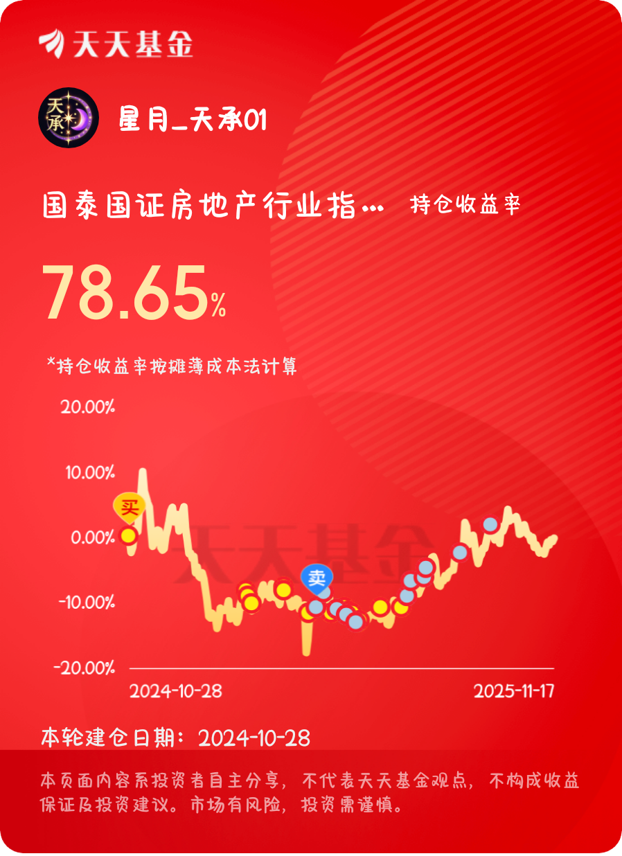 2025年11月18日,中线目标完成,房地产止盈至底仓,踏空无悔。只做笔记,不做推荐,操盘有风险,勿跟。$国泰国证房地产行业指数C$ #晒收益#