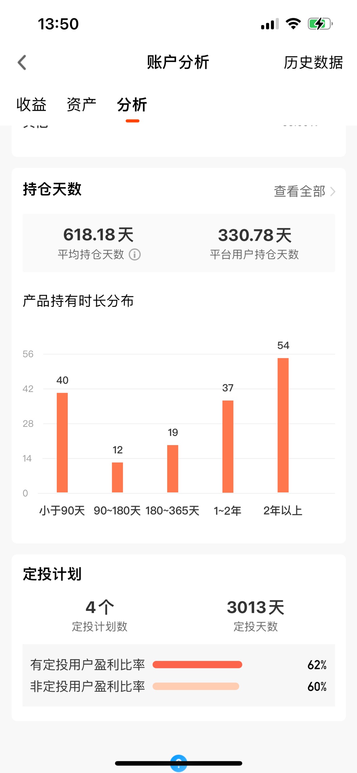 说到持仓天数,我的平均持仓天数是618.18天,比平台用户的330.78天长得多。其中持有2年以上的产品有54个,1-2年的有37个。这说明我是个“长情”的投资者,不喜欢追涨杀跌。就像养盆栽,得给它时间生根发芽,投资也是一样,好的基金和股票需要时间来发酵。我还记得有一只基金,刚买的时候一直不温不火,我持有了快两年,今年突然就爆发了,收益噌噌往上涨,这让我更加坚定了长期持有的信念。当然,也不是完全“死拿”,我会定期审视我的持仓,就像将军检阅军队,把那些表现持续不佳、逻辑不再的“士兵”替换掉,保持军队的战斗力。