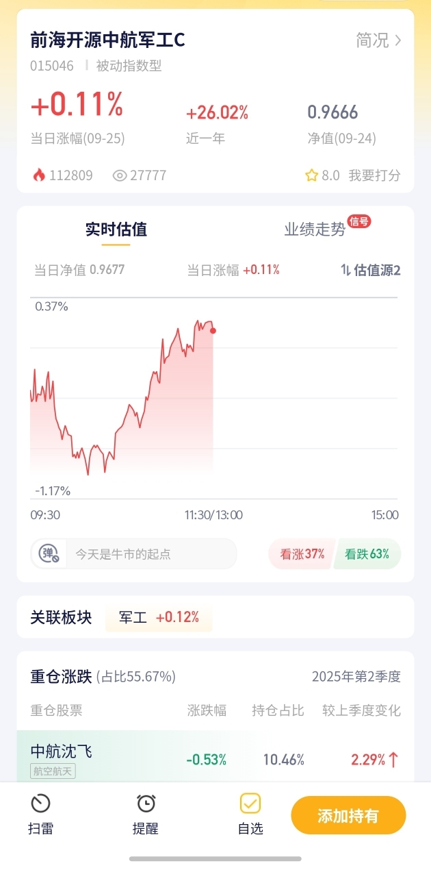 3. 前海开源中航军工C:昨天涨0.86%,今天涨0.11%,军工这波小涨小涨的,跟蚂蚁搬家似的,慢慢积累收益,挺好。