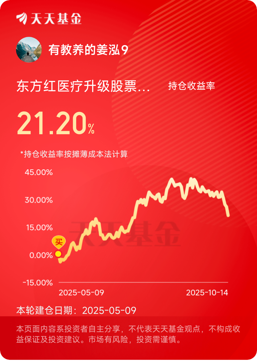 今天医药开始回暖了,还好提前准备了,相信这波行情可以持续一阵子啦,加油