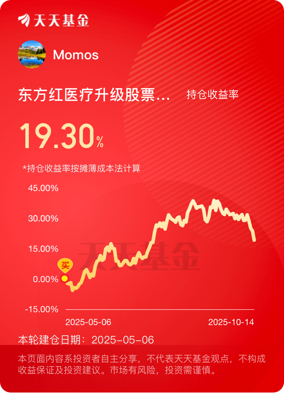 医药调整这么多,机会挺好的。市场也开始好起来了,今天试着加一点$东方红医疗升级股票发起A$ #晒收益#