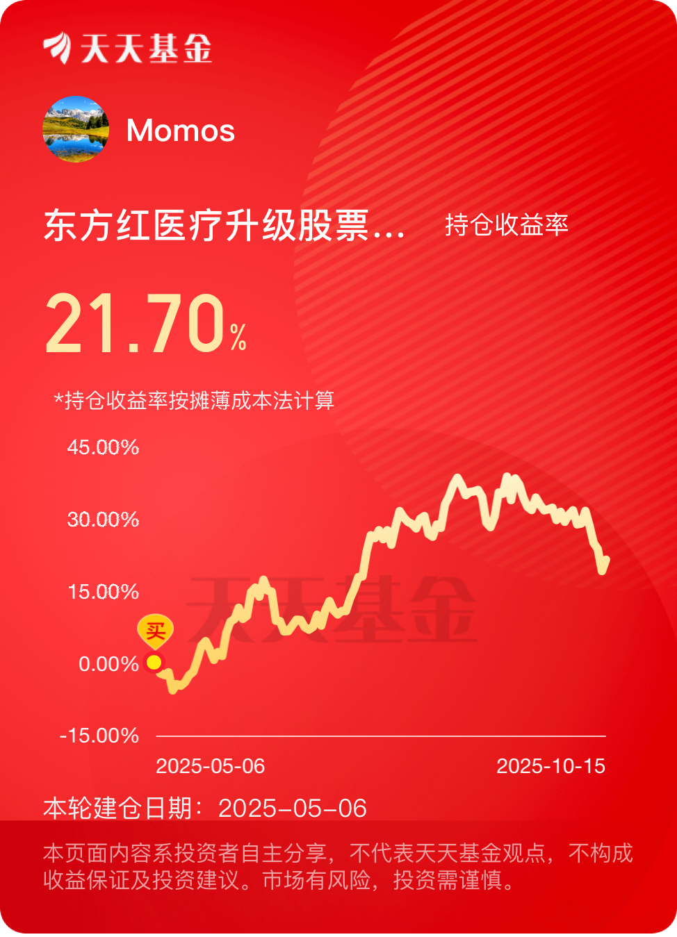 最近市场波动厉害,但是昨天下午也强力拉升了,收涨快2个点,千万别倒在黎明前!医药基本面仍在,再多拿一拿 $东方红医疗升级股票发起A$ #晒收益#