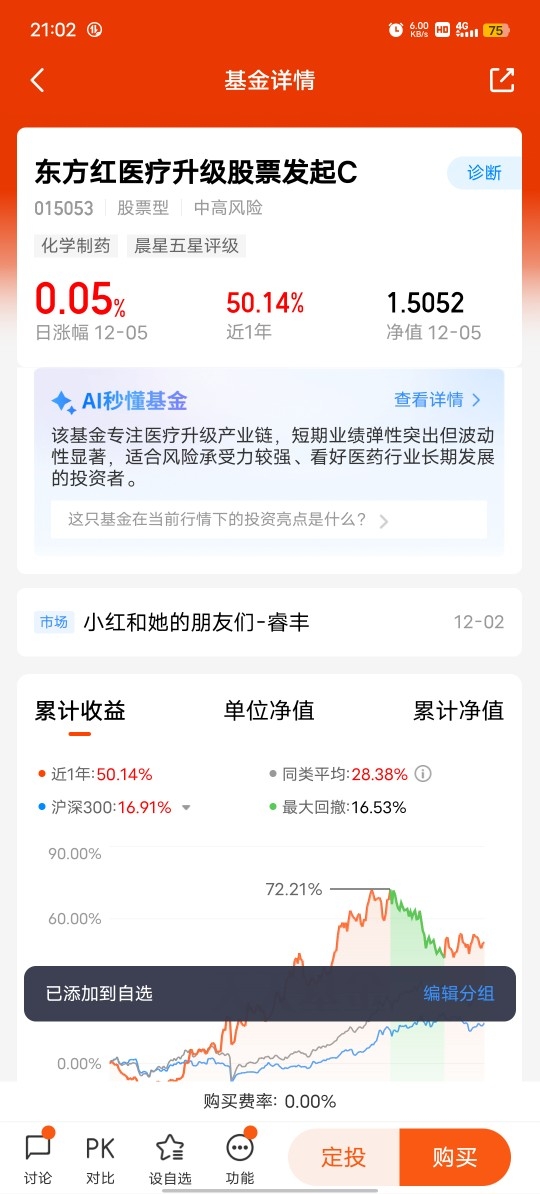 再一个,它的投资策略很有特色。聚焦在医疗升级这个领域,现在人们对健康越来越重视,医疗行业也在不断革新进步。从研发新的特效药,到医疗器械的更新换代,再到医疗服务模式的优化,这里面可都是藏着大把的机会。这只基金就紧紧盯着这些升级的方向去布局,相当于搭上了医疗行业发展的快车,只要行业整体向上,它就有机会跟着吃肉喝汤。