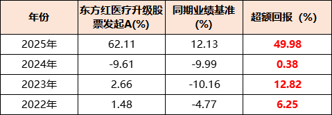 得益于对创新药的前瞻性布局,2025年创新药大年,东方红医疗升级股票的净值大涨,领先优势更明显,跑赢基准49.98%。