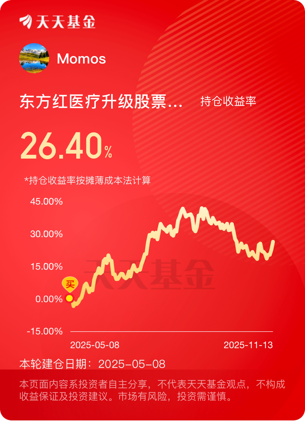 厉害,昨天继续涨啦!医药弹性大,不能看短期,长期还是向上的,要有点耐心 $东方红医疗升级股票发起C$ #晒收益#