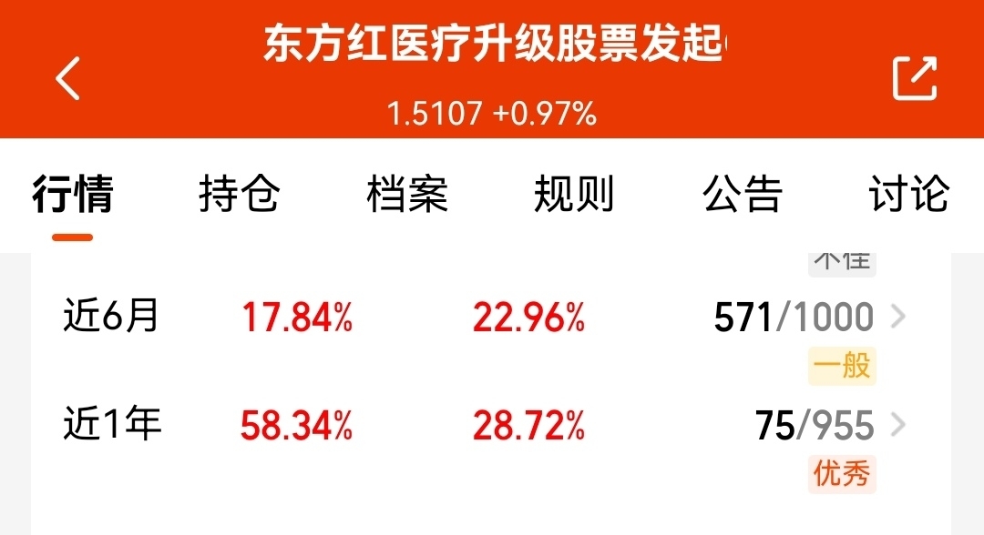 $东方红医疗升级股票发起C$ (015053)今年来上涨超62%,业绩远超医药指数,长期下来,有望获得不错的超额收益。随着创新药纳入医保提速、出海步伐加快,行业有望迎来新一轮成长周期,长期超额收益值得期待。