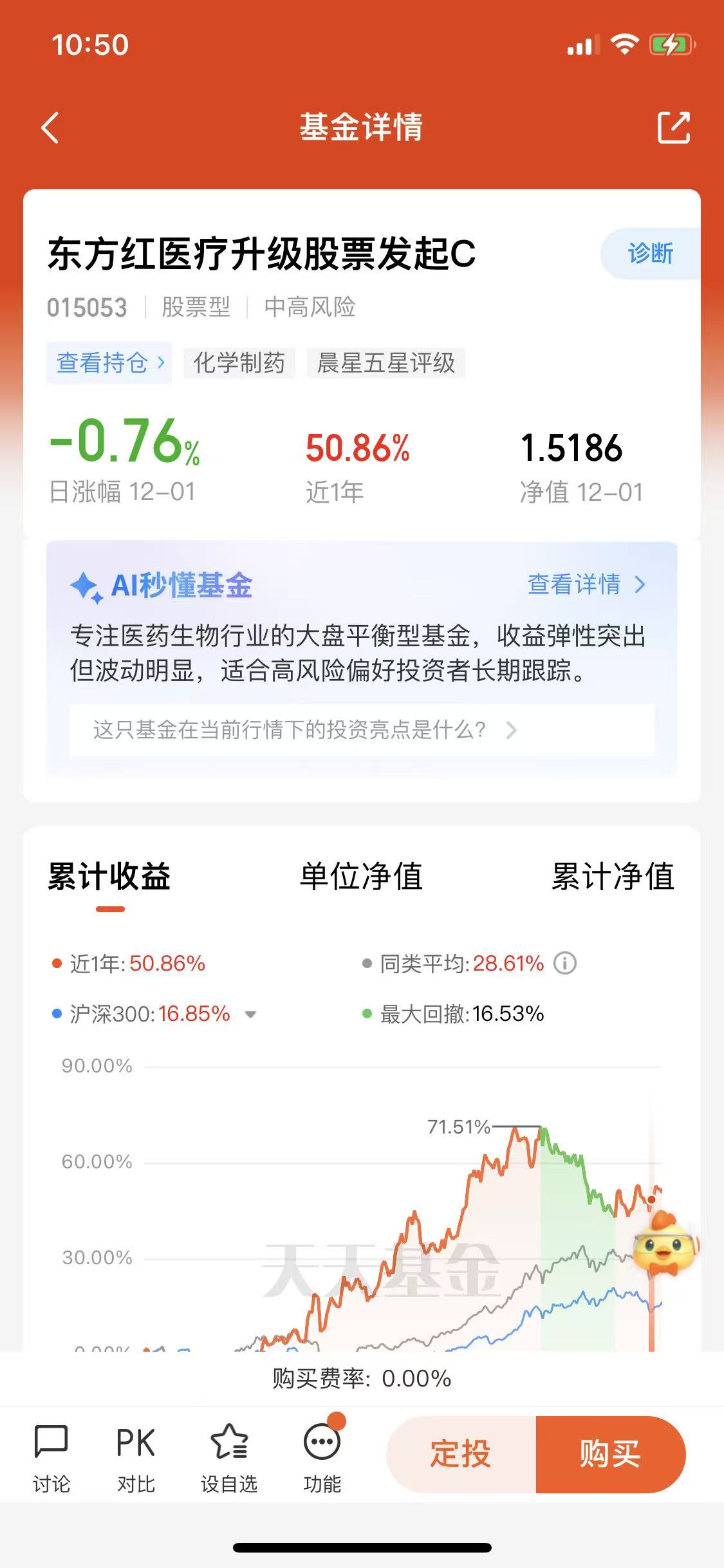 而对于普通投资者来说,选择一个专业、高质量、长期主义的基金产品参与其中,往往比自己选股更容易真正把握红利。东方红医疗升级C(015053)凭借优秀的基金经理、精准的持仓、友好的费率和强大的平台支持,成为了布局这一赛道的优质选择。当前行业回调带来的布局窗口,对于想长期分享创新药成长红利的普通人来说,确实值得把握。@东方红资产管理