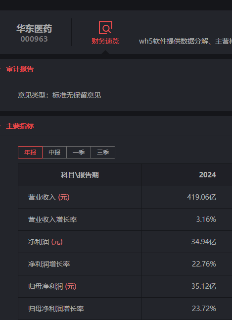 医药板块基本面一直属于结构性机会,创新药是产业趋势中最明确的发展方向,对于有收入利润的创新药企业,收入增速和利润增速都很快,如华东医药,2024年营业收入增长3.16%,归母净利润增长23.72%,本基金也连续重仓其14个季度;