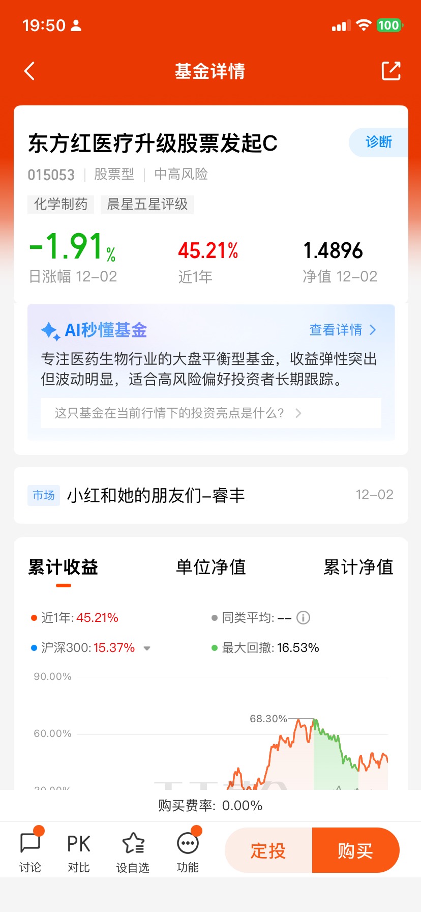 #医药迎来“黄金坑”?# $东方红医疗升级股票发起A$ $东方红医疗升级股票发起C$ 是一键布局创新药投资机遇的优选!我打算这几天开启定投,这只基金聚焦A股港股创新药优质公司,今年以来收益回报61.1%,在同类基金中排名前7%,非常优秀!