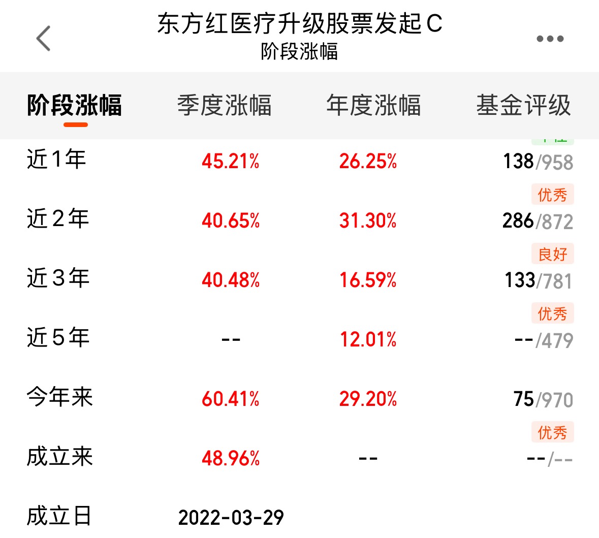 医药行业的强科技成长性,决定了创新药将是未来长期的核心投资主线。而中国创新药的全球竞争力提升、出海加速等多重因素也在不断强化创新药布局逻辑。$东方红医疗升级股票发起C$ 覆盖A股和港股创新药龙头标的,业绩能打,近1年涨幅45.21%,可以更全面把握住创新药成长红利。