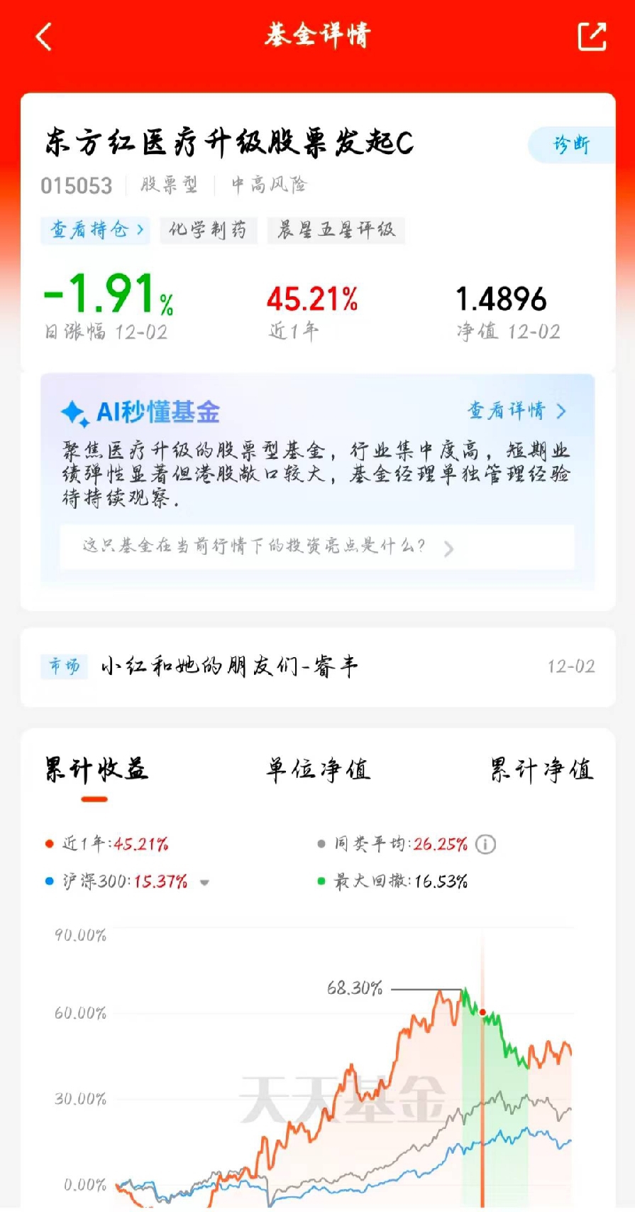关注创新药投资机会可以看看东方红医疗升级股票发起C,近六月涨幅10.03%,近一