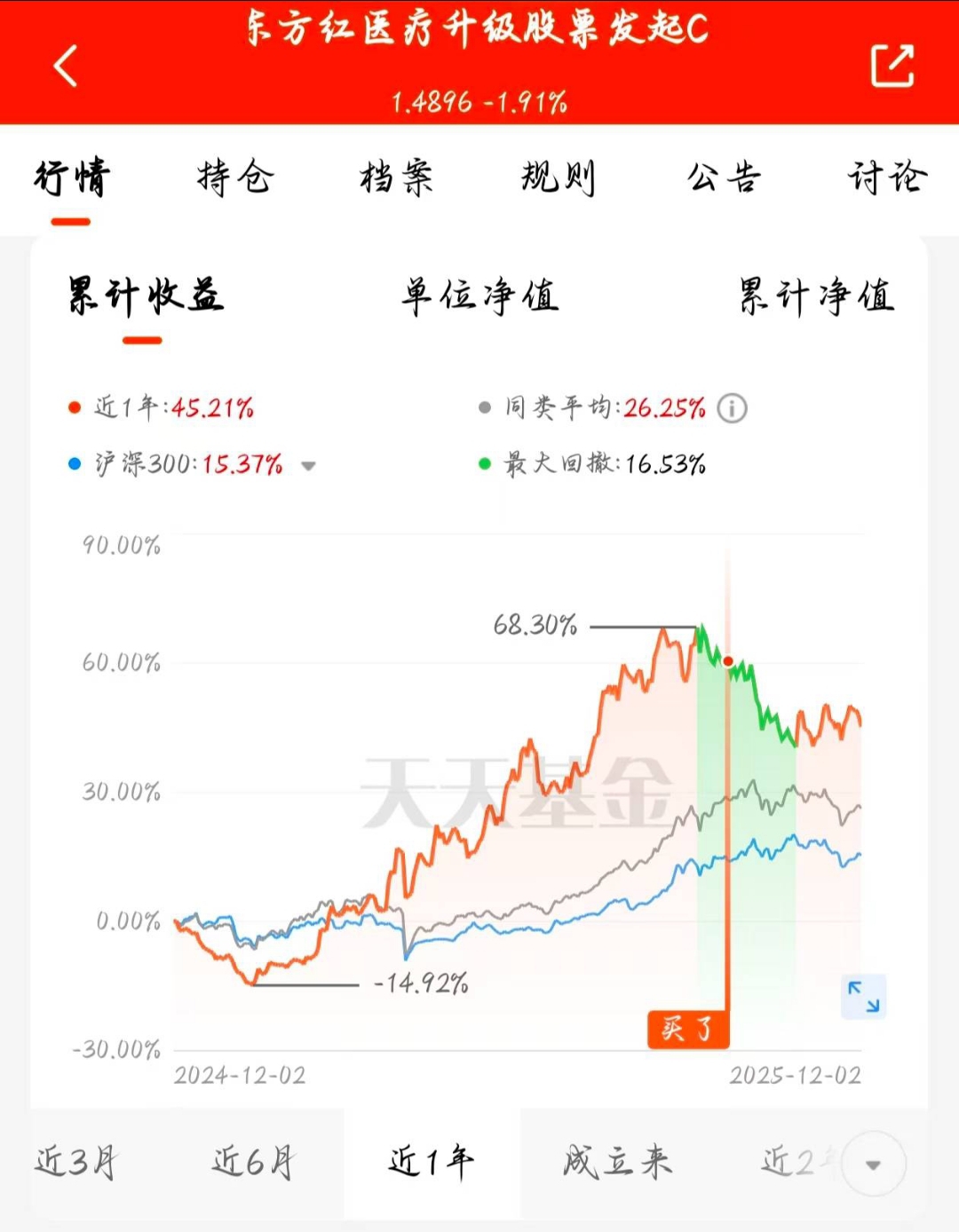 医药行业作为国家重点产业,创新药是发展重点。东方红医疗升级股票发起C近一年收益超45%,业绩表现突出。现在低位布局正当时,刚好赶上12月医保目录调整。