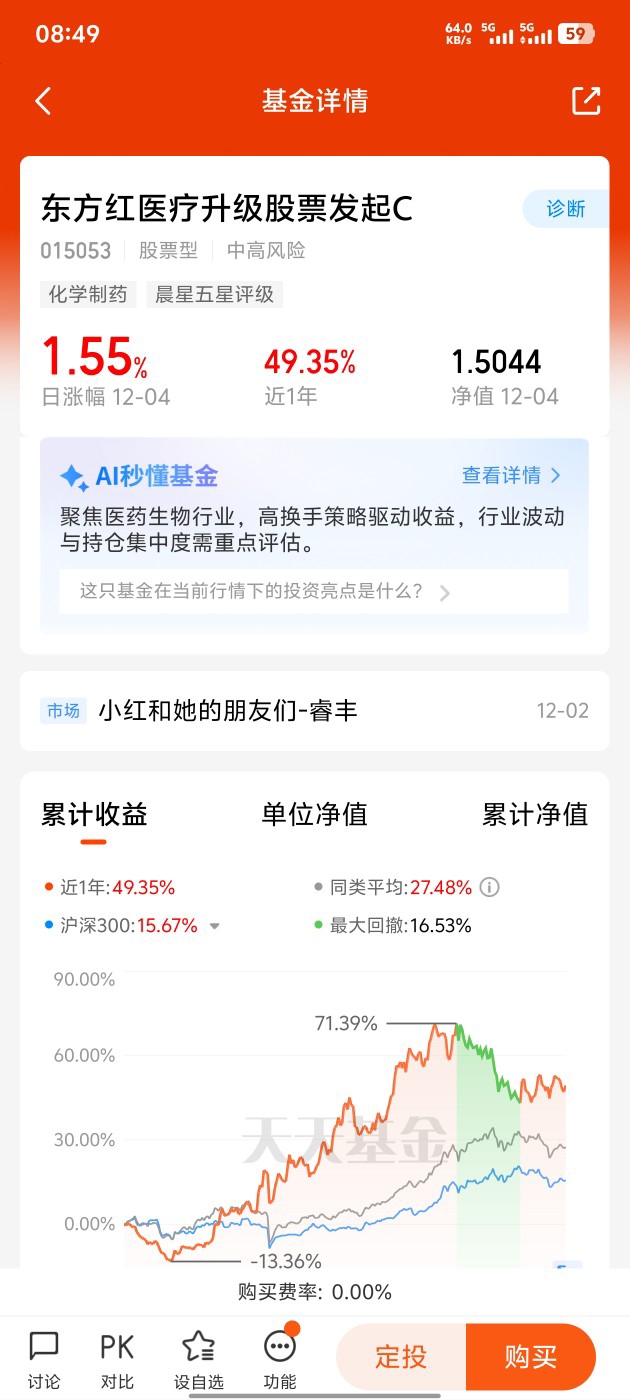 $东方红医疗升级股票发起C$#天天基金调研团# #青禾创作计划# @天天精华君 @东方红资产管理 @天天基金创作者中心 #晒实盘# #医药迎来“黄金坑”?#