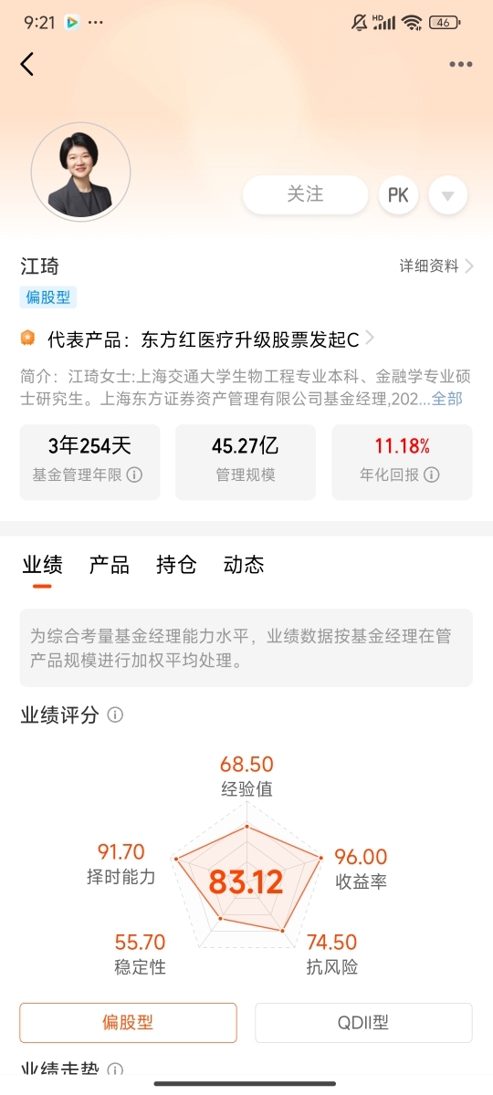 再聊聊东方红医疗升级股票发起C,这只基金的投资优势,让我敢于把真金白银投进去。首先是基金经理江琦的管理能力让我放心。她深耕医药行业多年,不仅对创新药的研发逻辑、产业链格局了如指掌,还能精准把握行业的政策风向和市场节奏。更难得的是,她的投资风格偏稳健,注重企业的基本面和长期价值,不会盲目追逐短期热点,这和我“稳稳赚钱”的投资理念不谋而合。