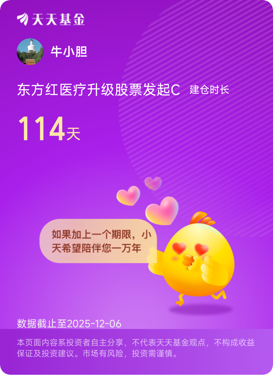 对我而言,接下来的投资思路很简单:继续坚定持有东方红医疗升级股票发起C,在市场回调时择机分批加仓,中长期陪伴基金和创新药行业共同成长。我相信,只要我们保持耐心,坚守长期价值投资的理念,就能在创新药这个黄金赛道上,收获属于自己的投资回报。@东方红资产管理