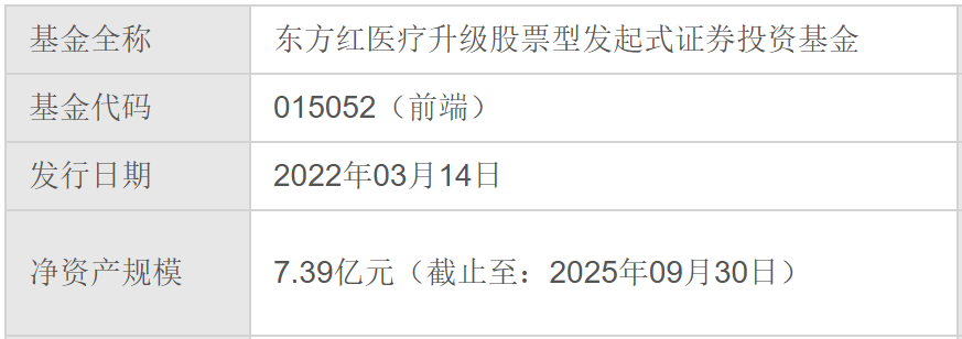 截至2025年9月30日,东方红医疗升级A类7.39亿元,C类18.7亿元,合计约26.01亿,规模从成立初期1.36亿元增长至目前水平,作为发起式基金已远超2亿元的最低要求。结构组成上,股票仓位90.97%,债券约2.45%,现金类资产比较少,专注医疗赛道。这样规模适中,优势就在于既保持了操作灵活性,又具备一定市场影响力,流动性风险可控。