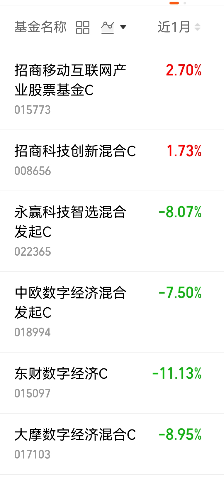 $招商移动互联网产业股票基金C(OTCFUND|015773)$近一个月涨幅2.70%
