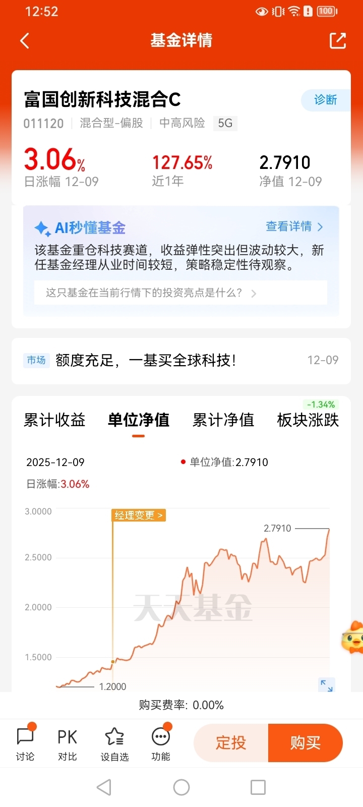 创新科技是长期好赛道,富国这只盯紧硬核技术,近一年130%+,现在分批上车稳妥。