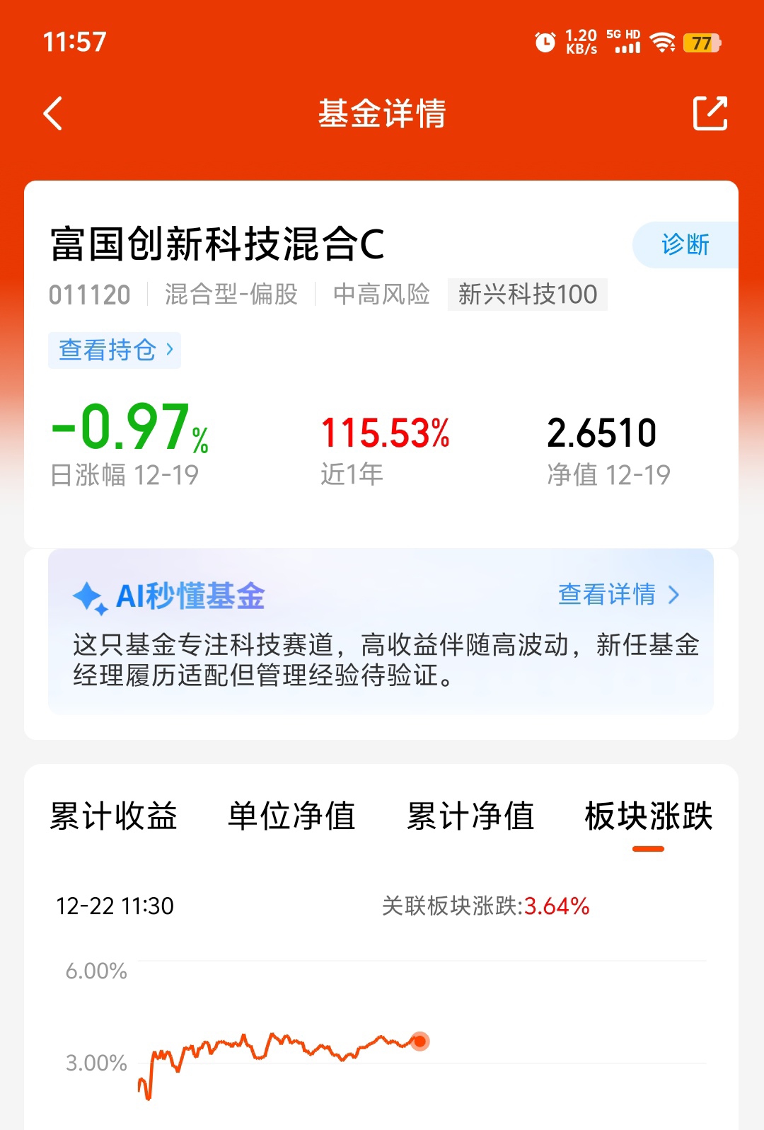 今天科技大反弹。富国创新科技估值3.48%,这里3.15%也不错。