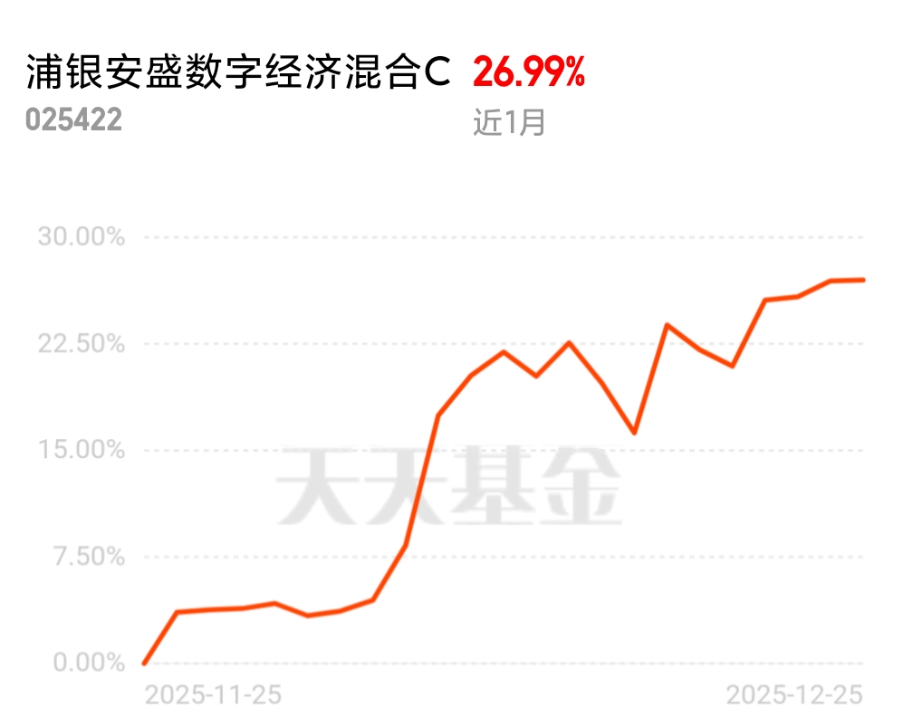 浦银安盛数字经济近一月快27%的业绩,年底补涨就靠你了!$浦银安盛数字经济混合C