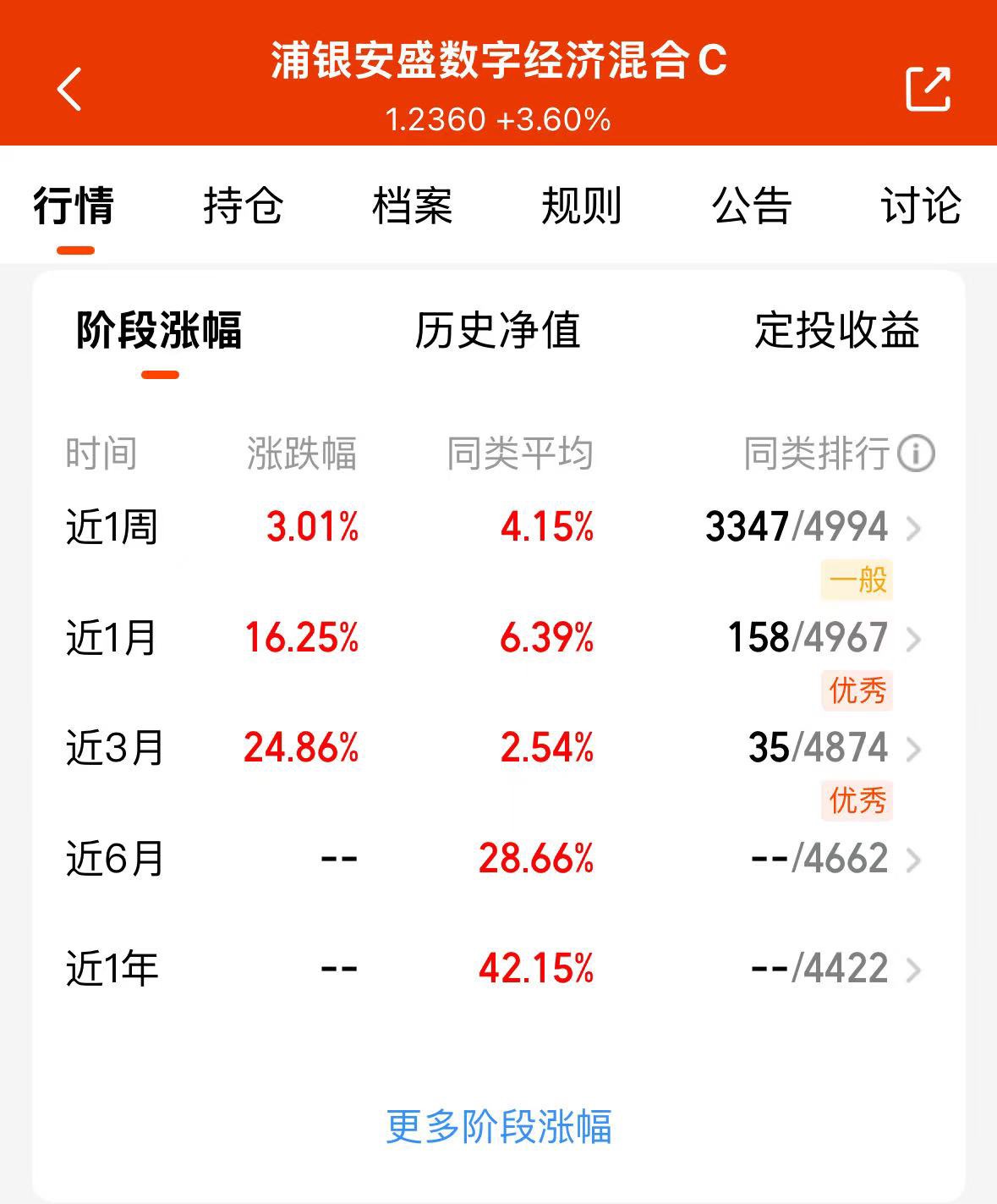 CPO里还是得看主动基,$浦银安盛数字经济混合C$这种科技核心资产,弹性也足,拿