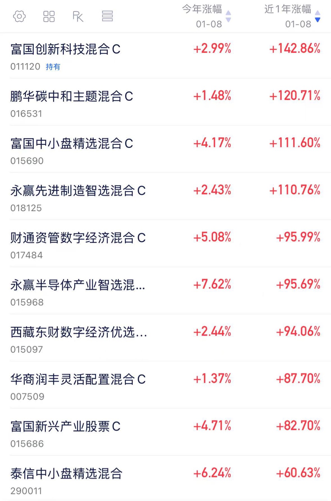 $富国创新科技混合C$ 年涨幅142.86%