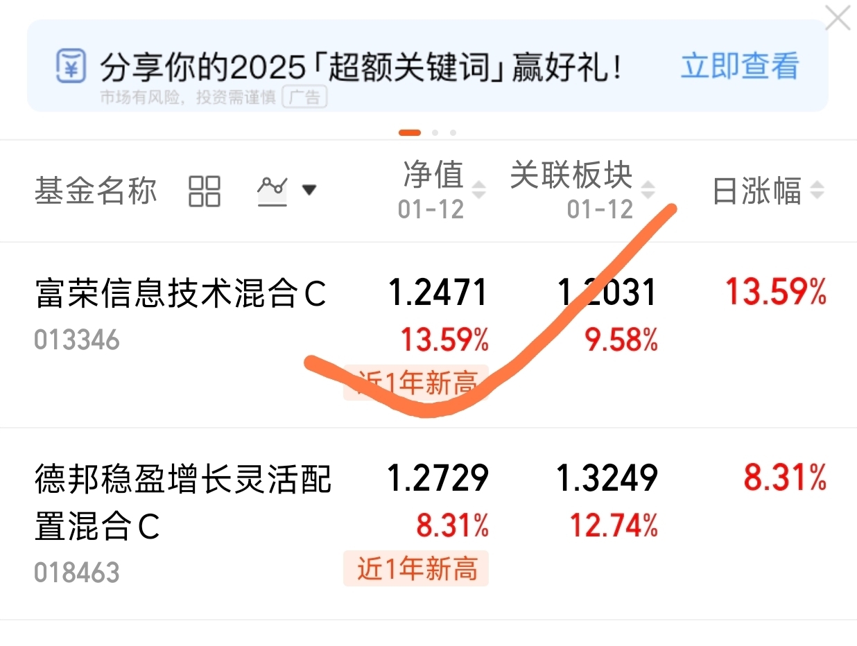 今天总有吃肉的,看看$富荣信息技术混合C$真的是太牛了,净值涨福13%点多